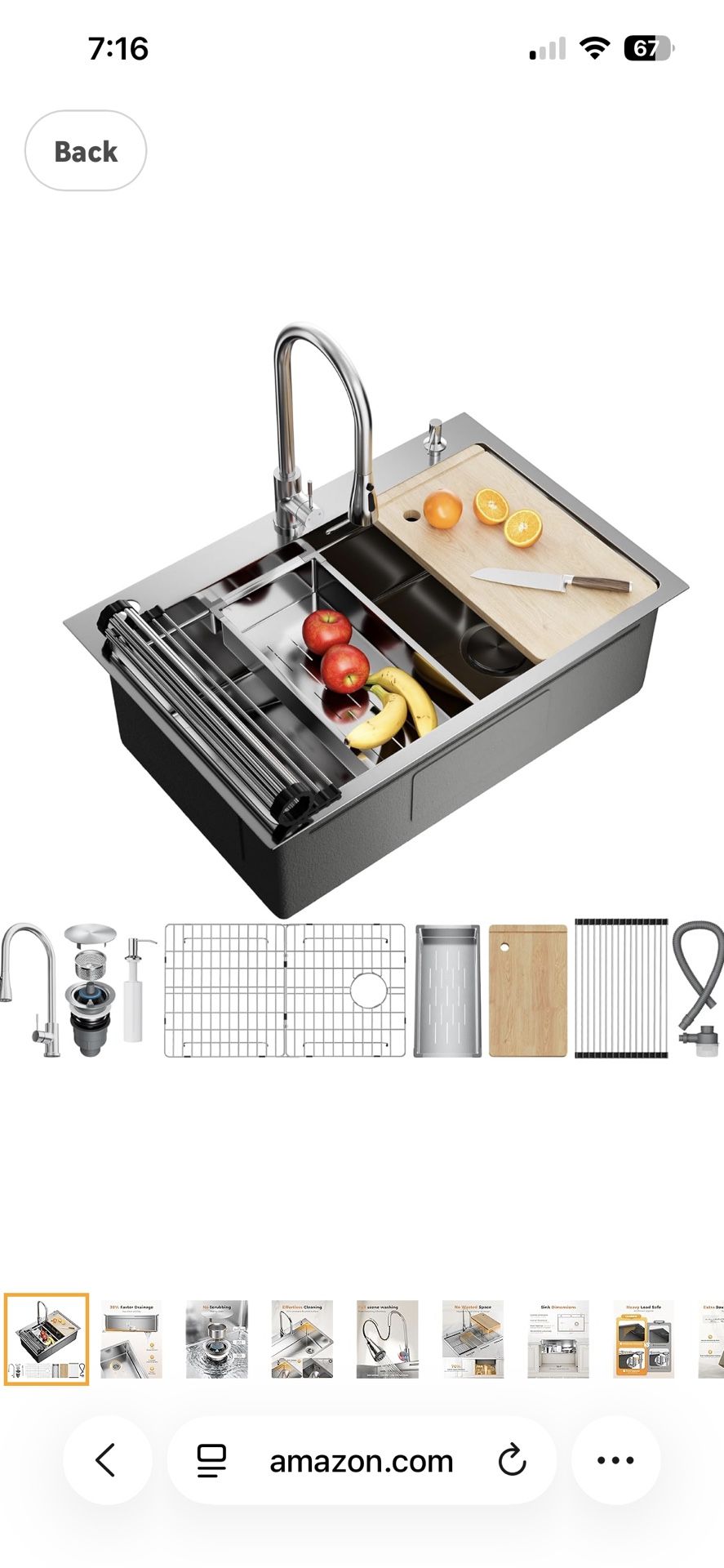 33X22 Drop In Kitchen Sink, 304 Stainless Steel Workstation Sink, Pop-Up Drain, Upgraded Fast Drain & Anti-Clog, Topmount Single Bowl with Accessories