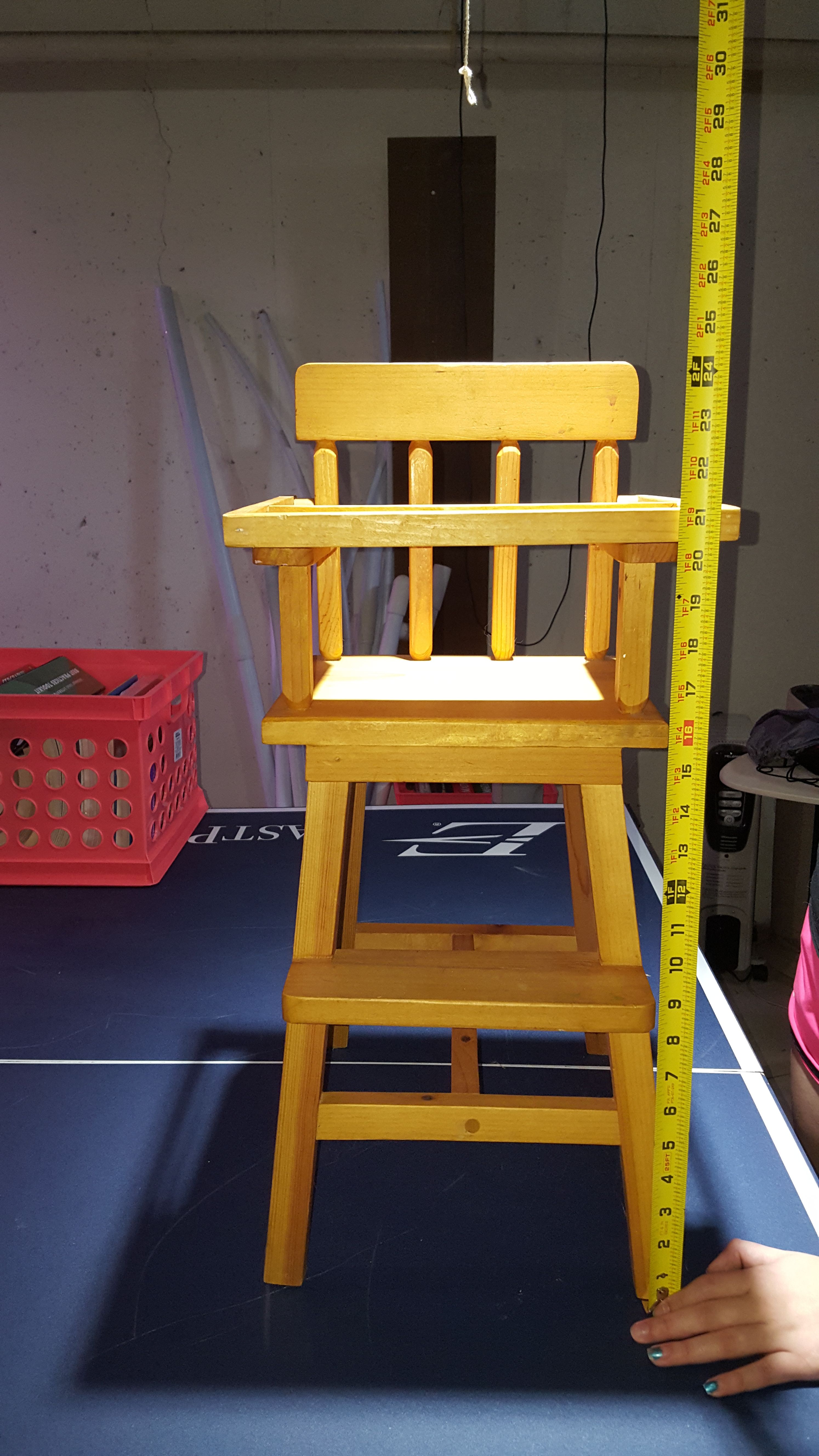 Nice wood doll furniture in very nice condition. $40 for the high chair. $35 for the bed.
