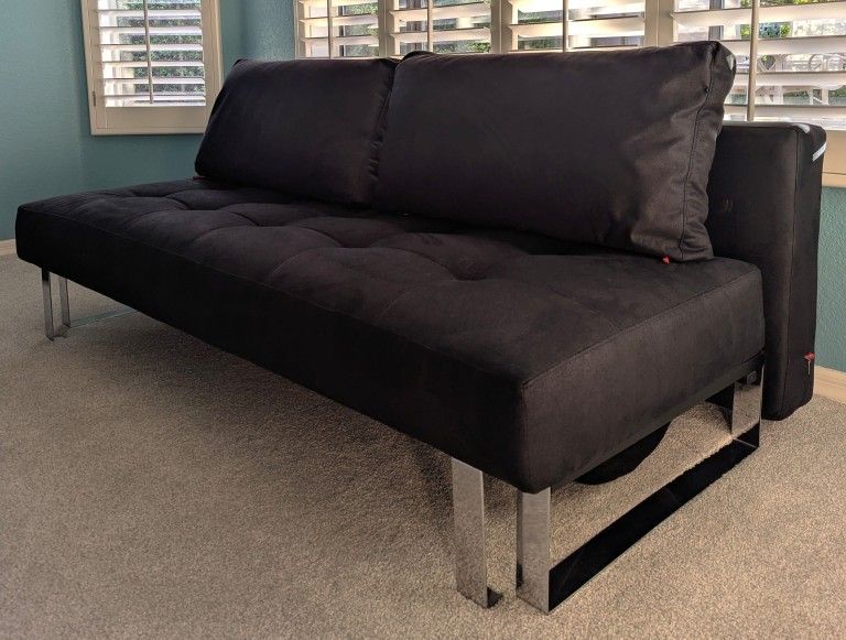 Innovation brand, deigned in Denmark. Excellent condition. Black microfiber. Extends to full size sleeper 77" x 33" x 38". Cash only.