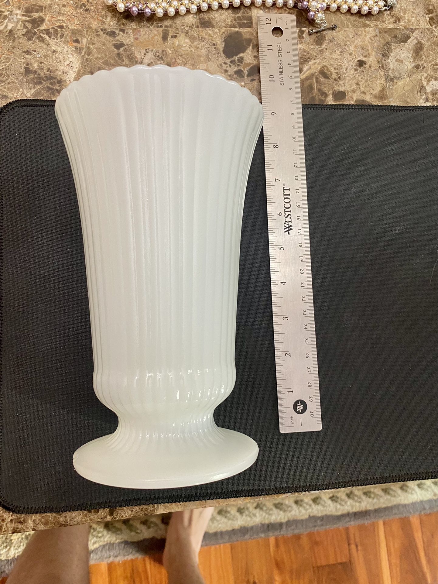 Milk glass vase 8 inches tall. E.O. Brody company vintage from the 60’s.