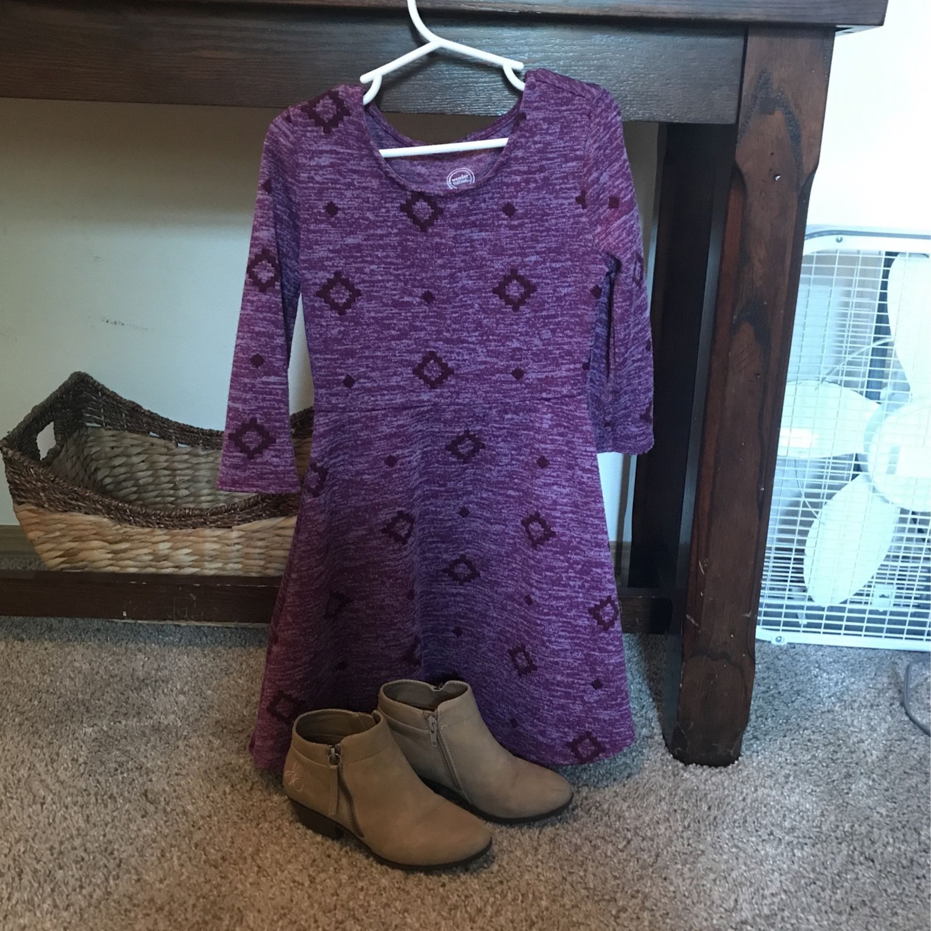 Great condition wonder nation size small (6) dress and tan boots size 12.