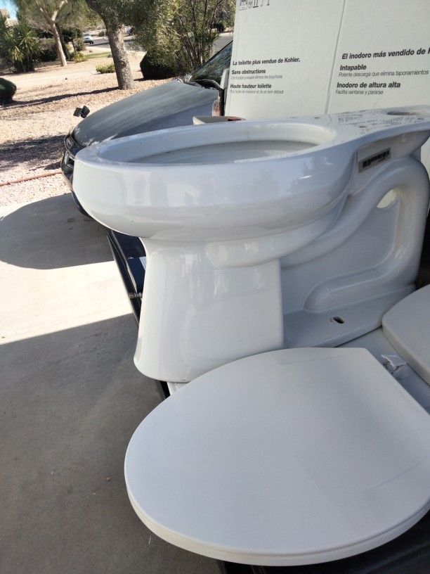 Taken out of bathroom remodel.conplete with wax ring and steel braided supply line and toilet seat location Gilbert.upgraded model retails $24&. Tank not rectangle has curvature. Save over 60 percent retail. CLEAN ready to Instal. Four eight. O. Three hundred nine one four. Seven. I am open to offers
