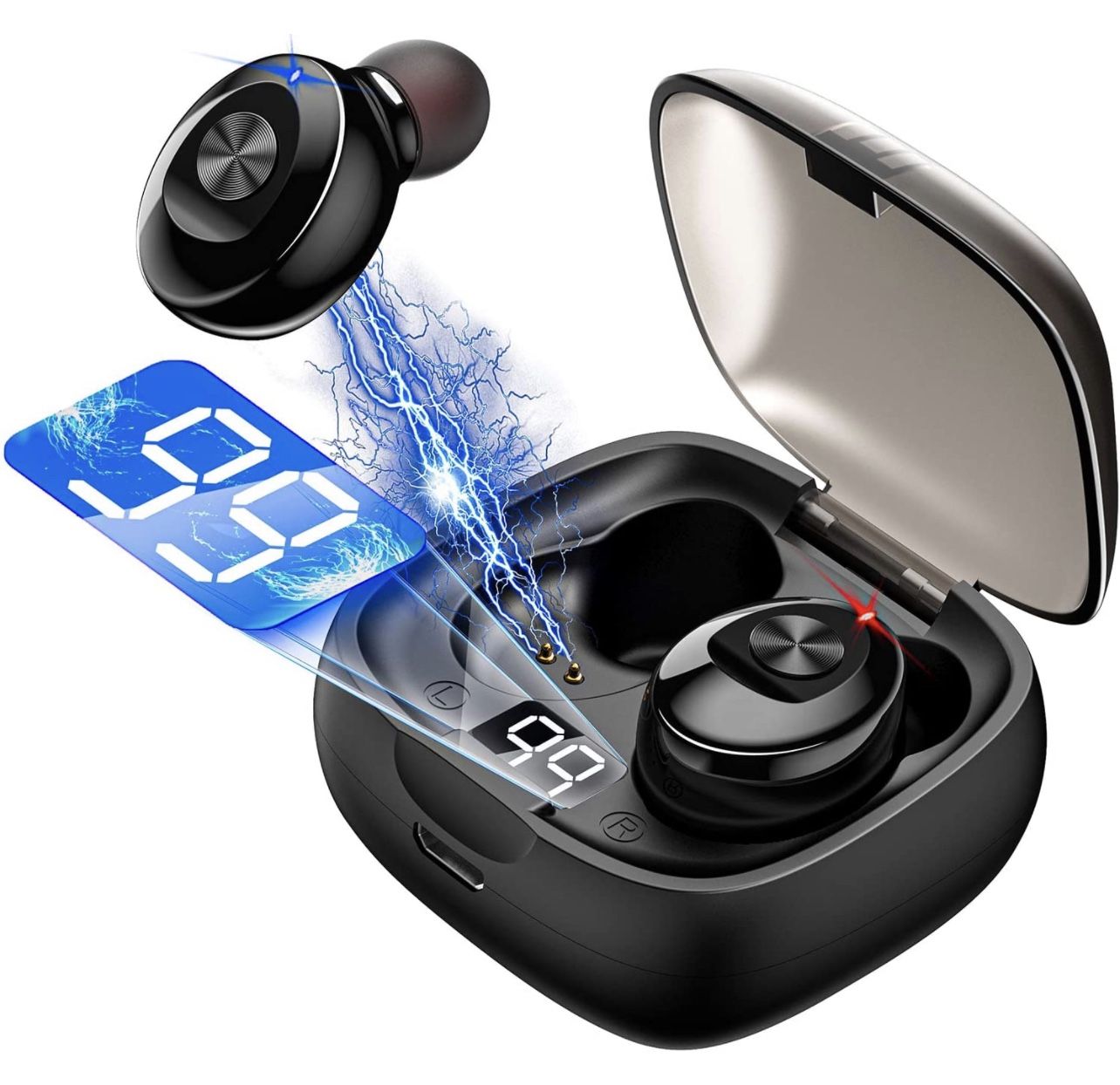 Wireless Earbuds Bluetooth 5.0 Mini Headphones, Hi-Fi Stereo in-Ear Earphones with 300Mah Charging Case, Touch Control, IPX5 Waterproof Headset LED , Elegant black, XG8-AAA