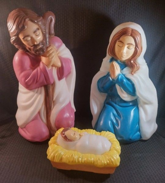 Empire Christmas Nativity, Holy Family 3 Piece Set, Lighted Blow Mold, Includes, Mary, Joseph and Baby Jesus, Indoor and Outdoor, Excellent Condition!