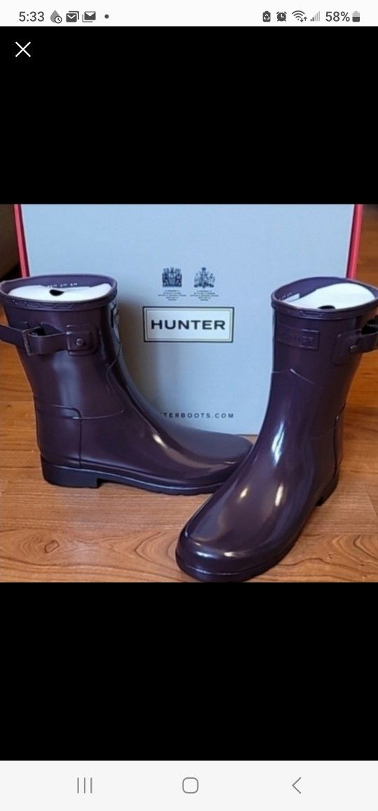 new hunter boots refined cherry Brandy glossy size 7..ladies if you dont own a pair of hunter rain boots your missing out..:)comes with box