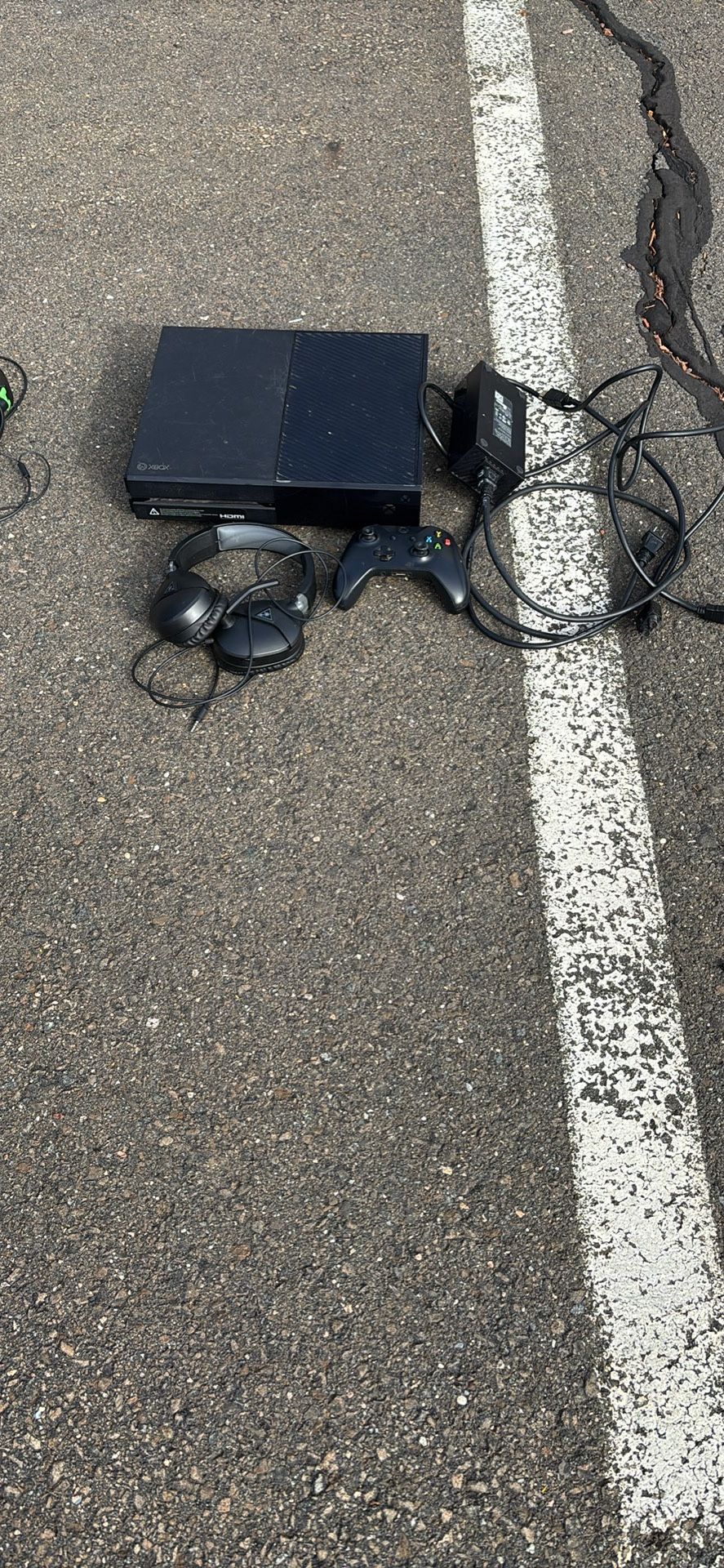 Console with cords, controller, and headset