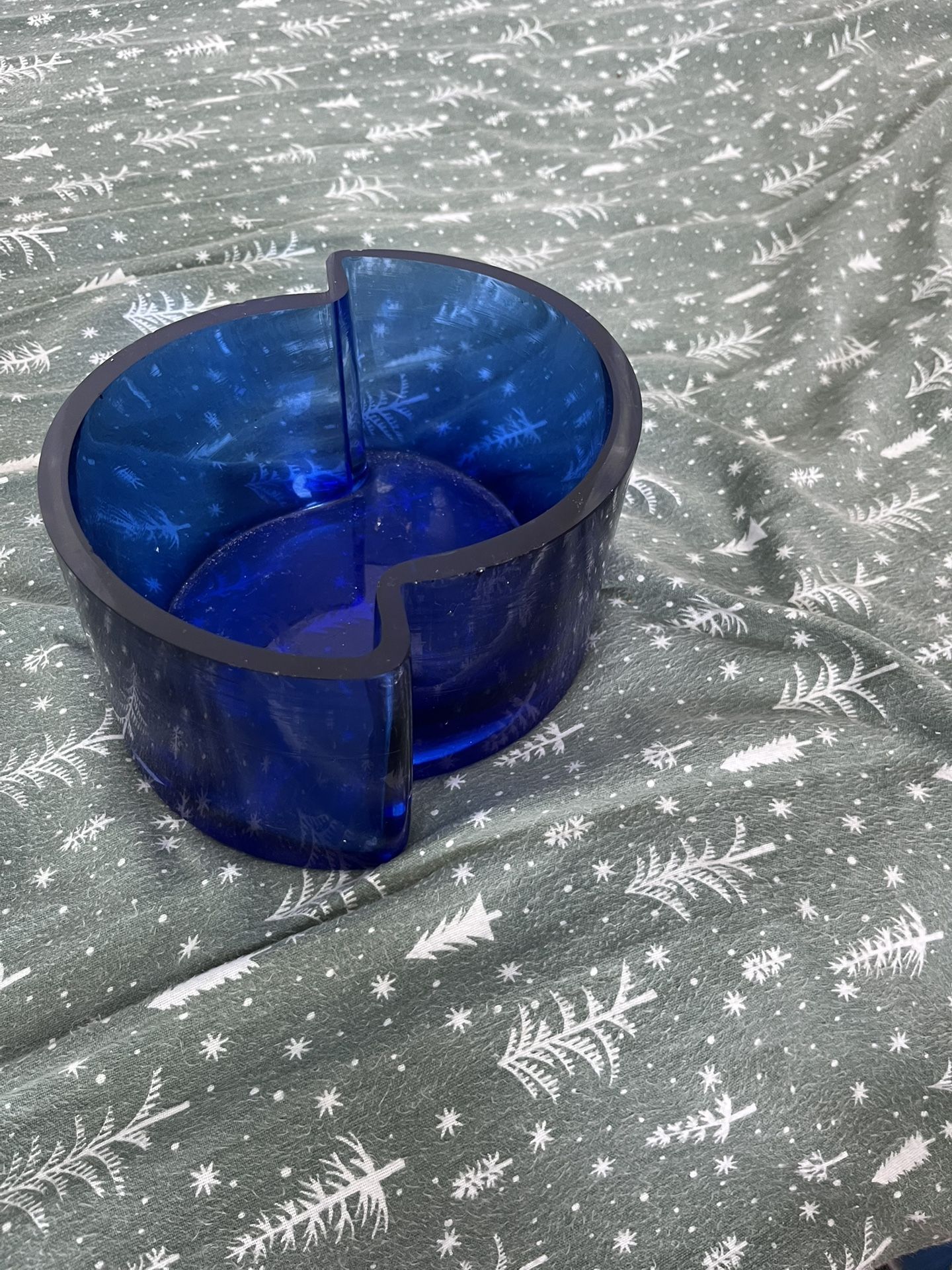 Vintage Unique Art Glass Bowl Vase Cobalt Blue Mid Century Modern Design