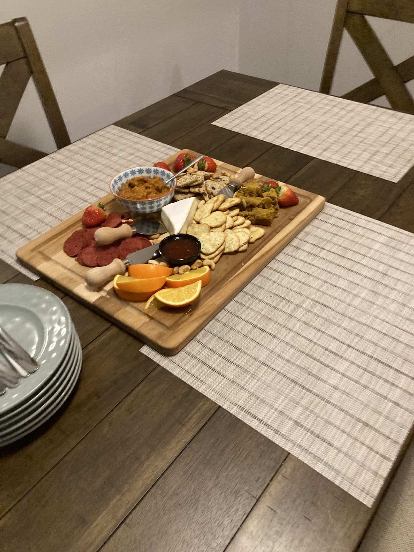Set of 6 easy clean beige (matches everything) placemats. Made of vinyl and in great condition!