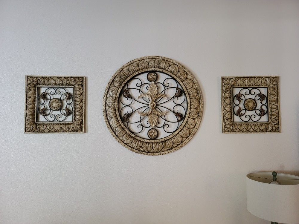 Beautiful Home Decor of 3 pieces. Square ones size 18 X18 Round 32 X 32 Cash Only No delivery Se habla Español.