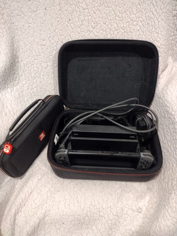 I now have a Switch 2, so I am selling my original, launch model Nintendo Switch. The console and JoyCons are in excellent working condition; I was playing games with it up until very recently. This listing includes the original Nintendo Switch Dock, Power Cable, HDMI Cable, JoyCon Grip, and JoyCon Wrist Straps. Also included is an exFat formatted SanDisk Ultra 128GB microSD XC card and two official Nintendo Switch Hard Shell Carry Cases. The microSD has been more than large enough for my sizeable digital games library, and the cases have kept the console and accessories well protected over many years. The Nintendo Switch has been factory reset, and is ready for setup with its new owner. There is a small amount of adhesive residue on the back of the Switch from some decorative stickers.