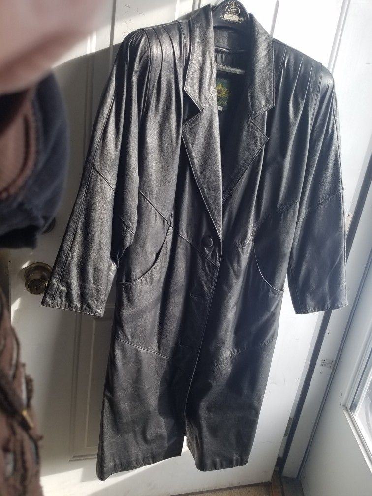 Avanti brand thinsolate beautiful long leather coat with zip out lining. No size label but thinking small/beautiful