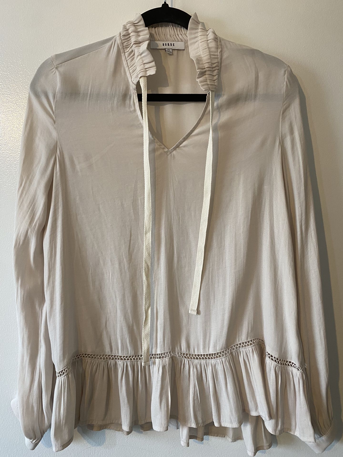 Light beige blouse, long sleeve, lightweight, size xsmall.