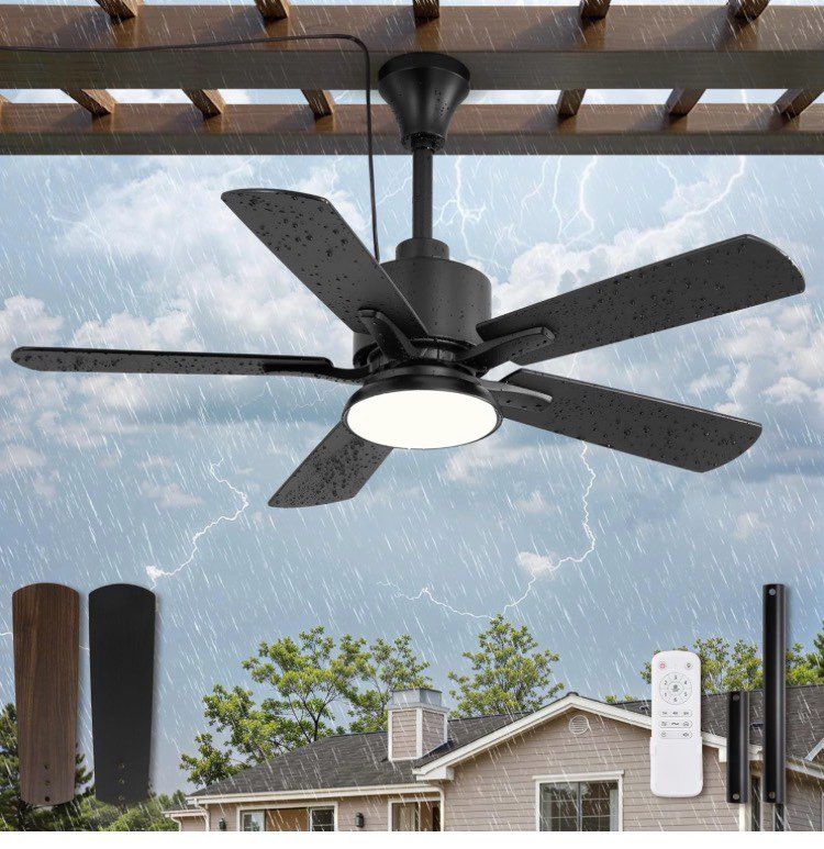 42" Outdoor Ceiling Fan with Lights, IP65 Waterproof Gazebo Fan with Remote Control 6-Speeds DC Motor, Plug in Hanging Fan for Patio Porch or Pergola Color: Black BRAND NEW IN THE BOX!