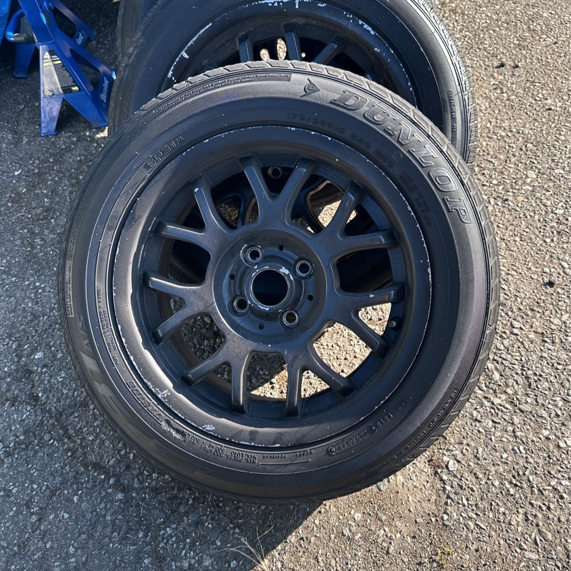 4x100 wheels tire size 175/65R15 tread is okay except one of them good condition, no curb rash, just needs repainting