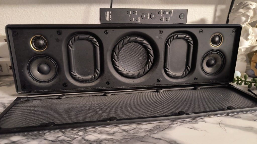 Works perfect. Sounds great. Barely used. See specs from Sony below. Dimensions (W x H x D) 14.13 x 4.37 x 4.06 in Bluetooth Communication System BLUETOOTH Specification Version 3.0 Input and Output Terminals Stereo mini-jack input, Ethernet, USB A, USB B General Features Power Consumption Approx. 45 W Internal Rechargeable Battery AC power Chromecast built-in Yes DLNA Yes AirPlay Yes Wi-Fi®, Bluetooth®, One Touch Functions (NFC) Spotify Connect Yes NFC Yes Wi-Fi Yes