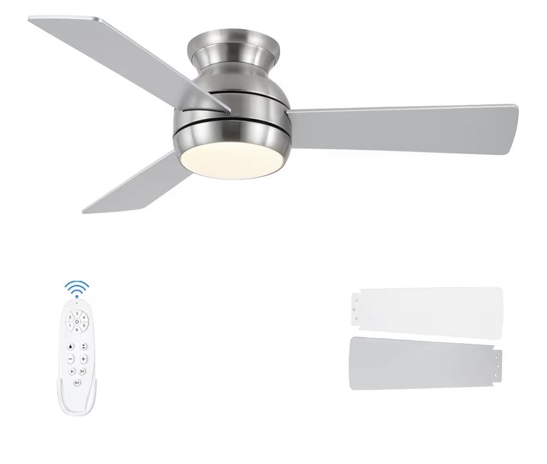 42 Inch Ceiling Fans with Lights and Remote, Brushed Nickel Low Profile Ceiling Fan with Light, Flush Mount, Reversible, 6 Speeds, 3CCT Dimmable, Bedr