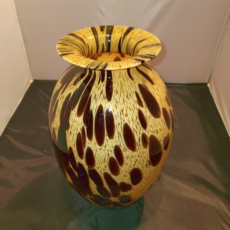 LARGE ITALY MAESTRI VETRA ART GLASS TORTOISE SHELL VASE