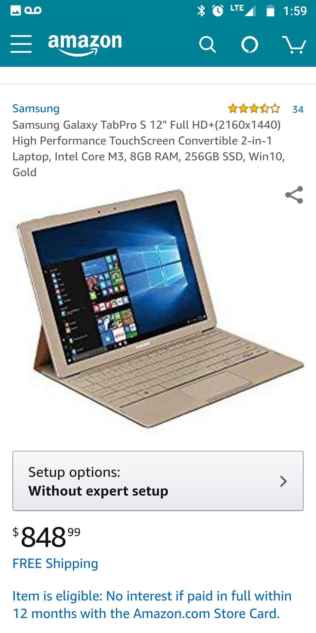 Paid $1,077 for it brand new,Runs windows 10 . Plus it combines an Intel Core M processor with 8 GB RAM + 256 GB solid state drive, so you can work better and store more. More Power, More Doing With fast charging, get up to 10.5 hours¹ on a single charge so you can binge-watch your favorite show or power through a presentation. Slim. Sleek. Stylish Thin and light, the Galaxy TabPro S is designed with the sleek lines you expect from Samsung, has a few marks on the leather cover but besides that nothing is wrong with it, has a fresh install of Windows 10