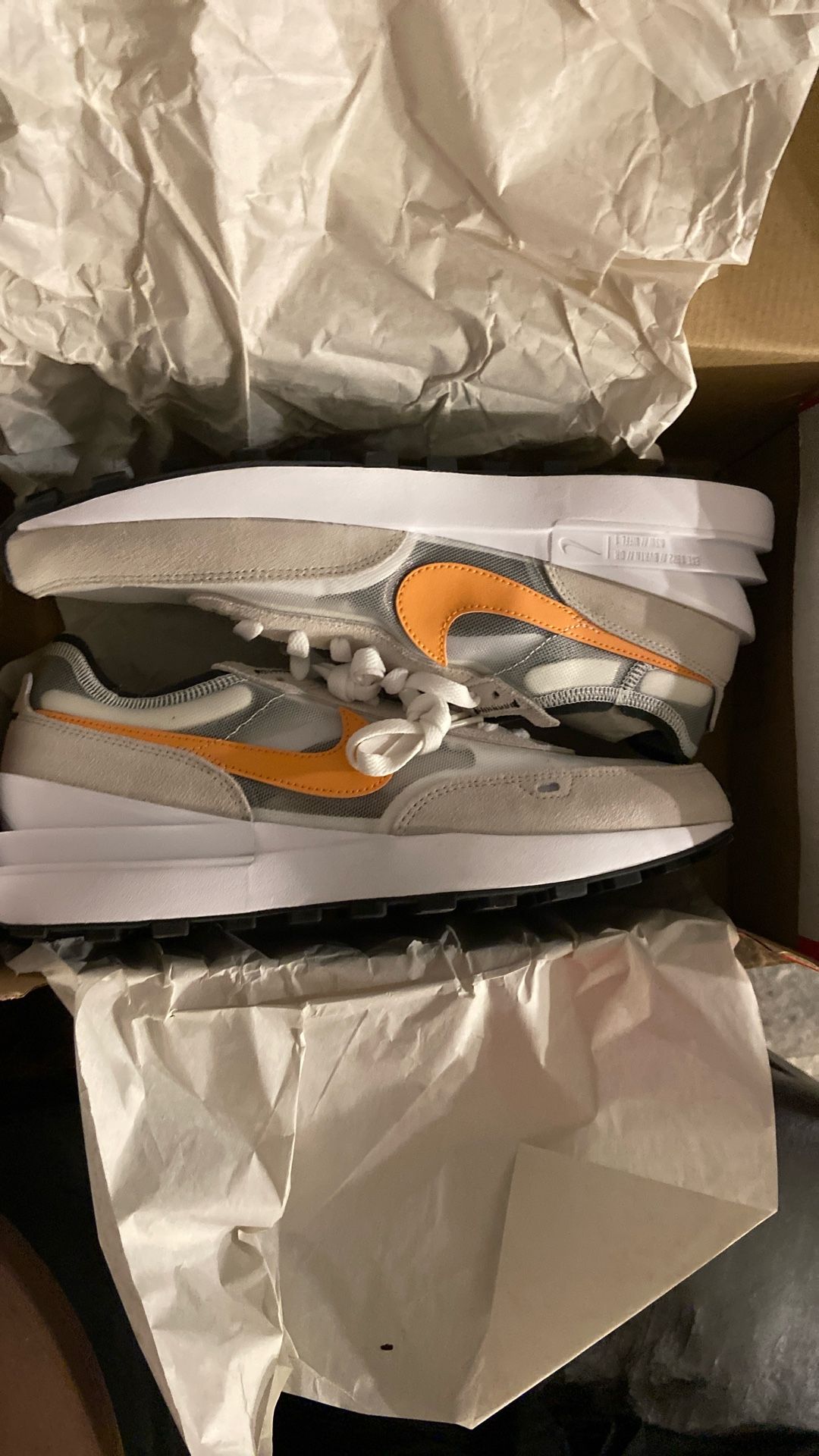 Brand new Nike waffle one limited white orange color size 12m retail $172 … I’m all about deals so $65 obo