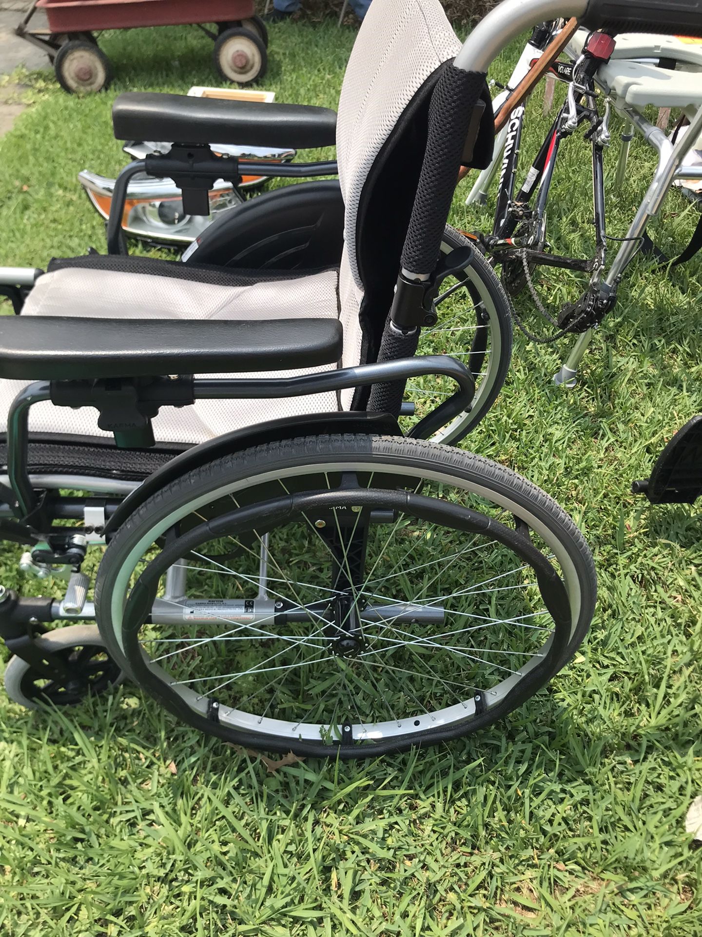 I am selling this Karman Healthcare, Mobility Solution, Wheelchair. Made from T-6 aircraft grade aluminum for total weight of 18 pounds. Ergonomic seat and backrest. Comes with non-removable, anti-bacteria 1/4” high seat cushion. Folding Backrest. Companion Brakes. This wheelchair comes in very good condition.