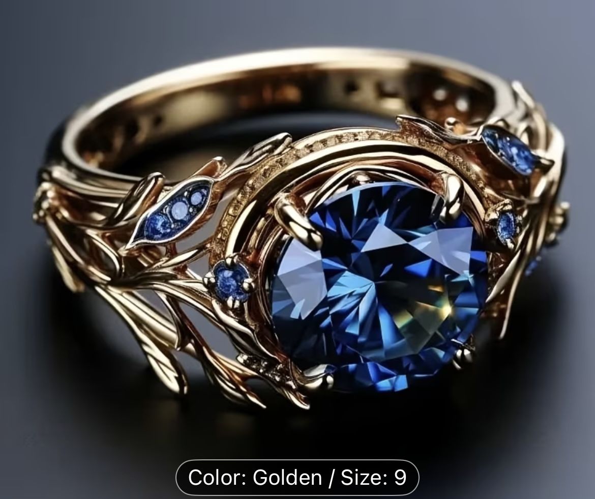 Women's Elegant Blue Cubic Synthetic Zirconia Ring with Golden-Tone Copper - KC Oval Blue Synthetic Zirconia Suitable for Wedding, Anniversary, Valentine's Gift, April Birthstone, Year-Round Wear - Durable Engagement/ Wedding