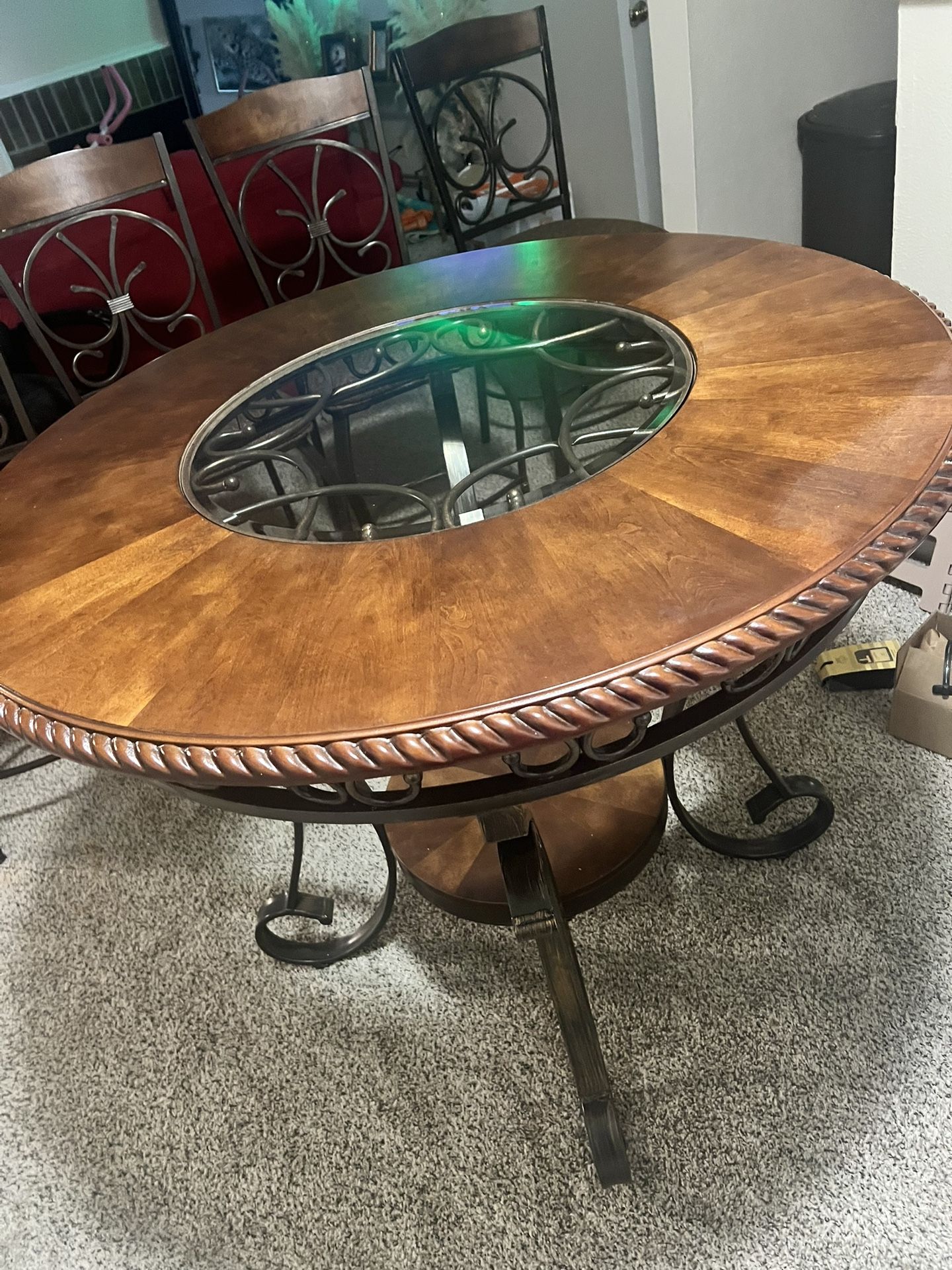 Like new dining room table and chairs. Must keep up 71115 zip code. Pet free