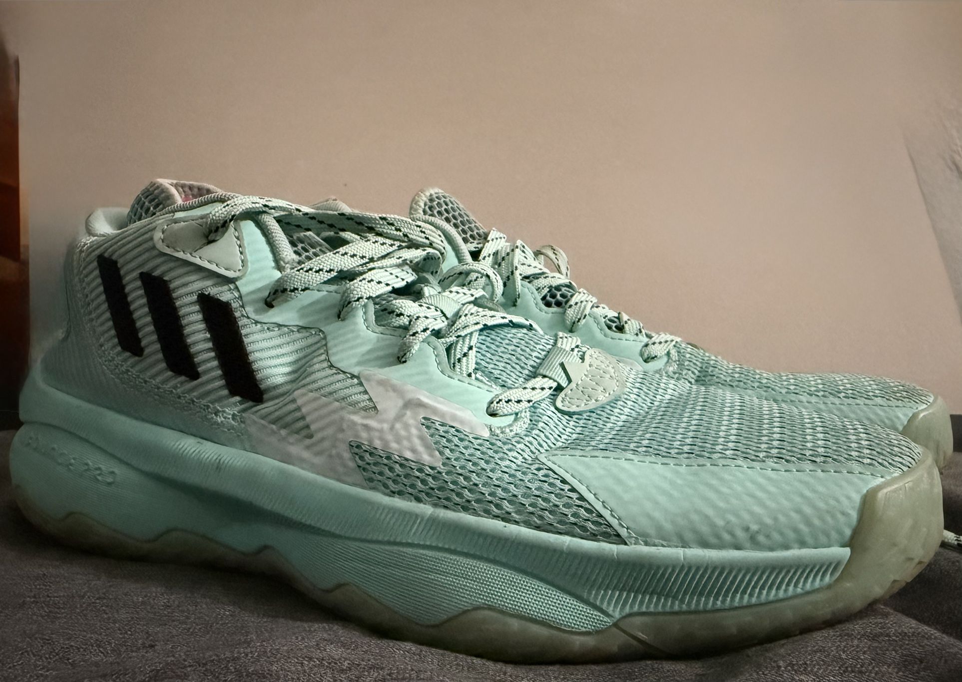The Adidas Dame 8 is a bouncy, stable shoe that has bounce pro cushioning, lightweight feel, and supportive fit. This shoe offers bounce pro which helps with impact protection and soft landings. Stylish on and off the court. Size 9. Selling because I hardly wear these shoes when playing.
