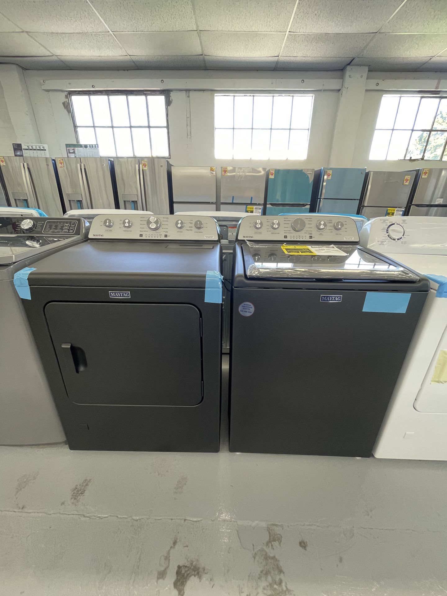 Maytag Maytag - 4.8 Cu. Ft. High Efficiency Top Load Washer with Extra Power Button - Volcano Black and 7.0 Dryer Gas