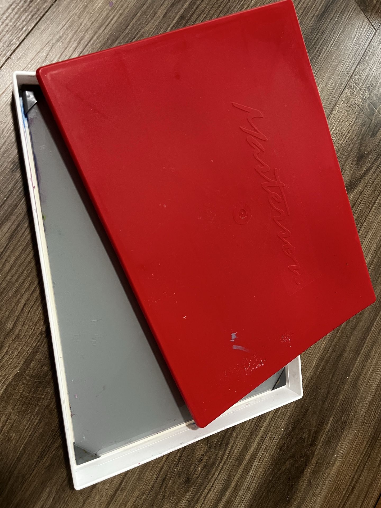 This is the sta wet palette with a separate glass palette that does not usually come included. Used but in great working condition, the palette keeps paints from drying out when sealed. Has some paper inside and comes with the yellow palette sponge too. Price of glass palette was a separate cost originally around $30 or so. Sized 16 x 12 inches