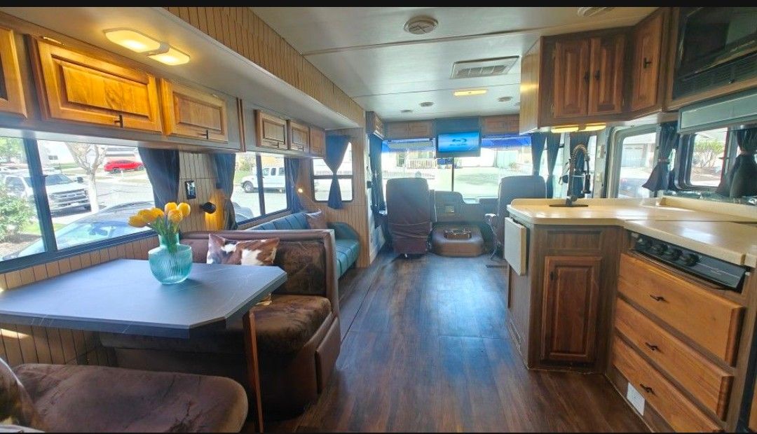2000 This Monaco La Palma RV is in excellent condition with only 33,000 miles and packed with upgrades! ✨ Features & Upgrades: ✔ Fully renovated – everything is new!Floor, wallpapers, roof, lights ✔ Spacious 32ft RV with 2 slide-outs – extra living space! ✔ Sleeps 6 comfortably – perfect for family or group travel ✔ Full kitchen – fridge, freezer, stove, microwave, and water heater ✔ Two AC units & heater – stay comfortable in any weather ✔ Dinette & living room area – spacious and cozy ✔ Two LCD TVs with DVD players – entertainment wherever you go ✔ Like-new generator – reliable power anywhere ✔ Backup camera & side cameras – easy and safe maneuvering ✔ Android Auto & Apple CarPlay – stay connected on the road ✔ Powerful 10-cylinder Ford engine – smooth and strong performance ✔ Four batteries – plenty of power for all your needs ✔ Separate bathroom & shower – added privacy and convenience ✔ All-new LED light system (dimmable) – energy-efficient and stylish ✔ Fresh, gray & black tanks – clean and well-maintained ✔ Almost new tires – only 3K miles driven on them ✔ Just renewed registration – no extra hassle ✔ Pink slip in hand – ready for a new owner! This RV is road-trip ready, spacious, and built for comfort and reliability. Serious buyers only.