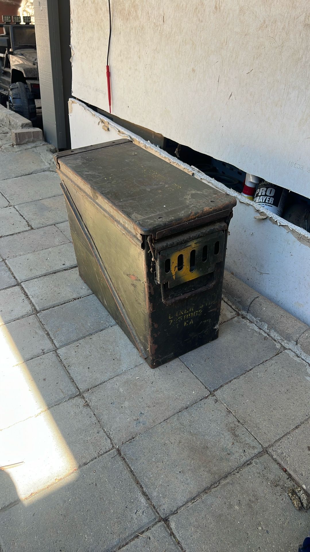 Old vintage collectible small arm ammo box from war. (Possibly Vietnam era)
