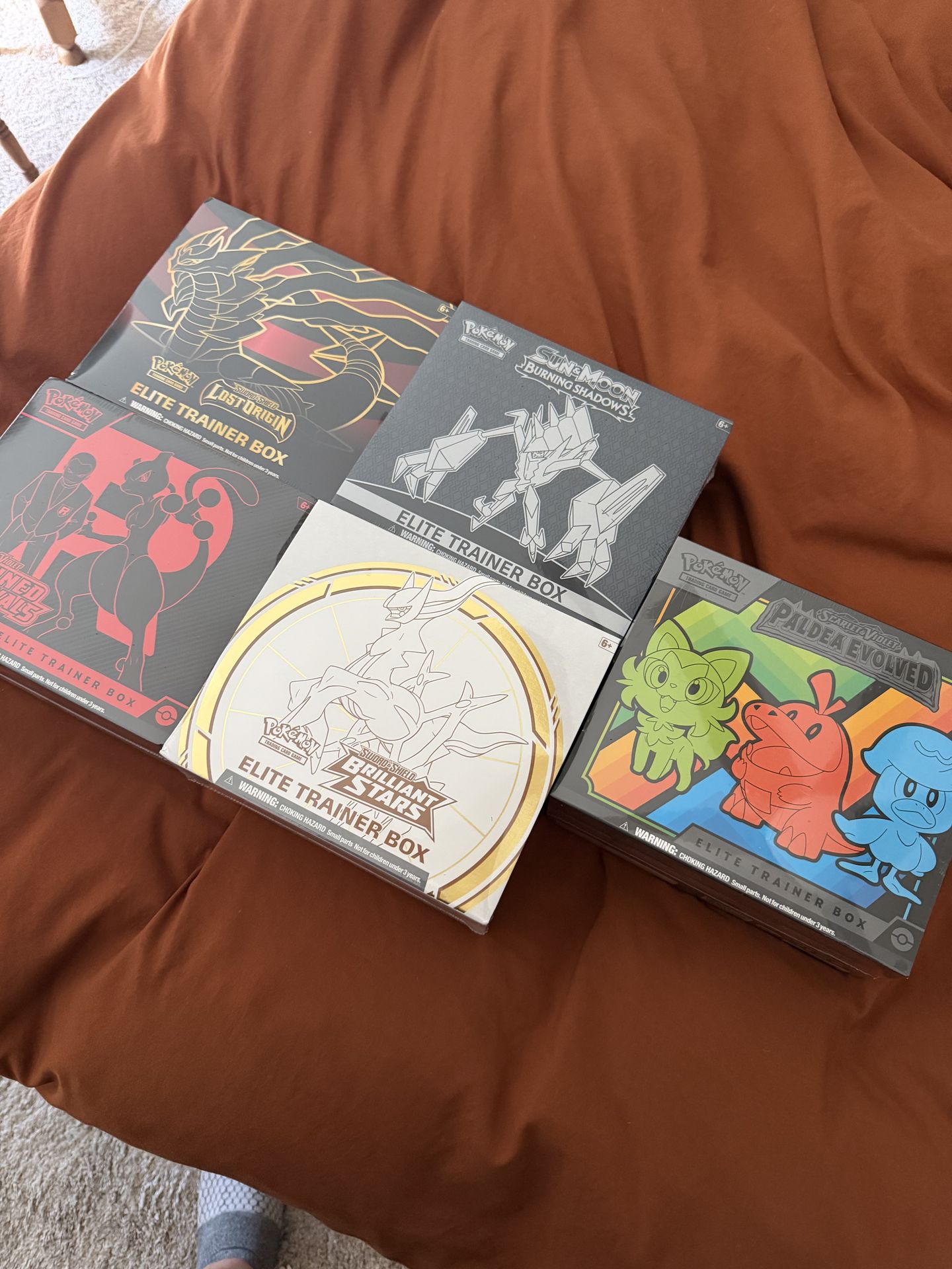Dr: 190 Burning shadows: 300 Paldea evolved: 150 Brilliant stars: 140 Lost origin: 170