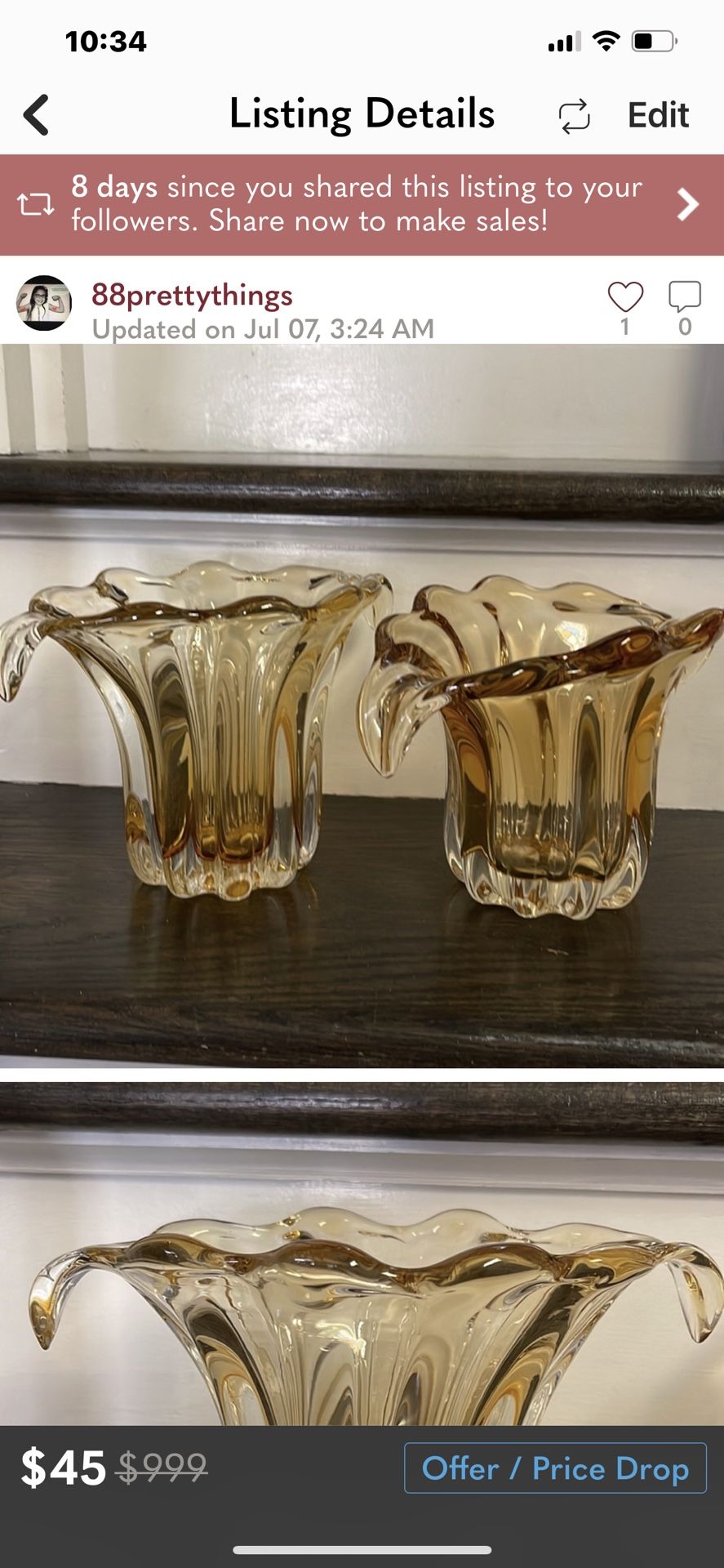 Amber glass vintage vases perfect condition. $45 EACH OR great price for both.