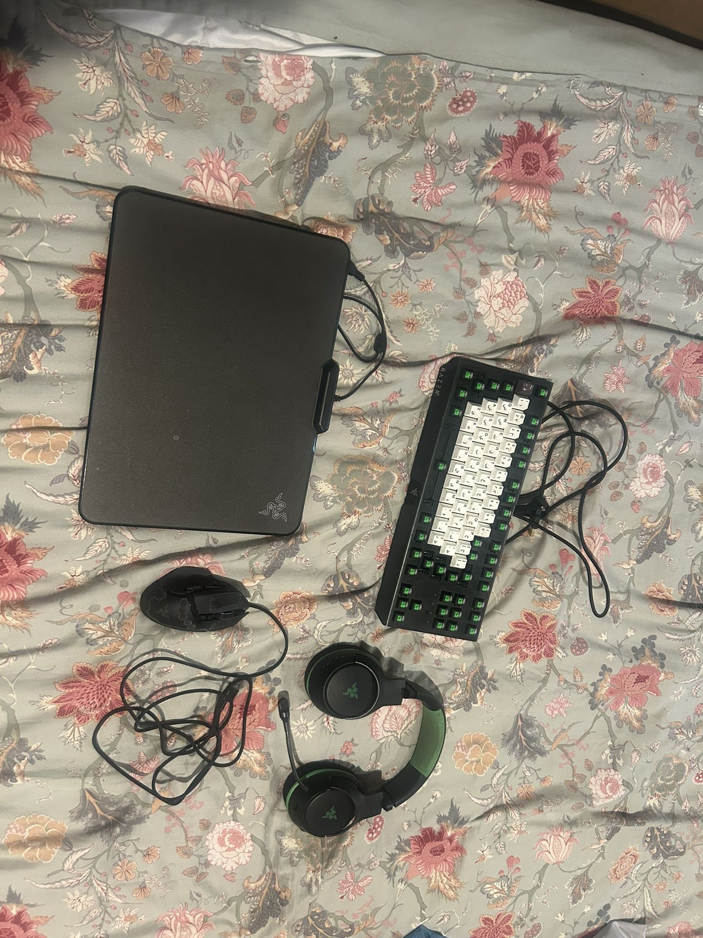 All work perfectly the keyboard is a wired razer blackwidow x (missing some keys but they all work) the head set is a razer kiara v2 xbox edition and its wireless , mouse pad is the razer firefly v1 wired , and the mouse is the razer basilisk v3 wired asking 80$ obo or trade for a 2080 ti super
