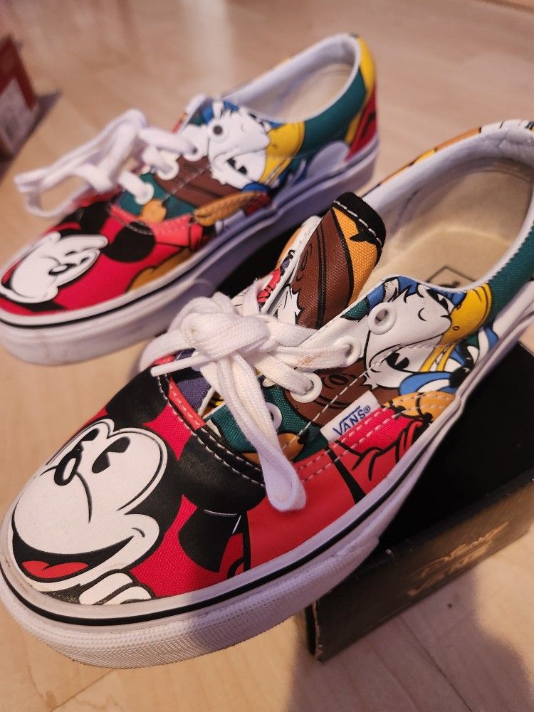 'Mickey and Friends' sneakers. They feature an all-over graphic print on canvas