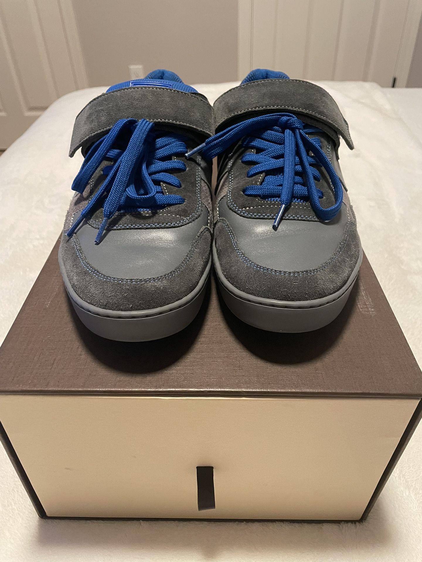 Cool grey leather and suede Louis Vuitton shoes with blue laces, stitching and outlining. Size EU 7/US 8-8.5. Kept in great condition; only wore two times.