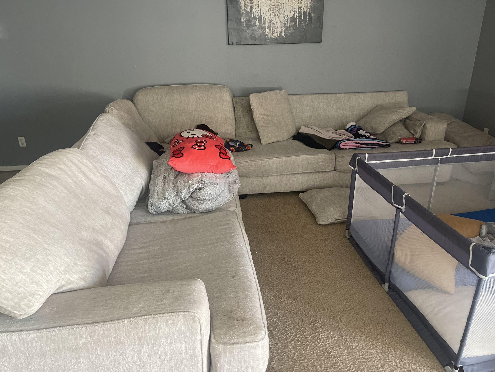 Very comfortable comes with about 10 to 12 pillows. Does need to be cleaned. Has some food stuff on it from my four-year-old son but everything is easy to clean everything zips out comes right out.