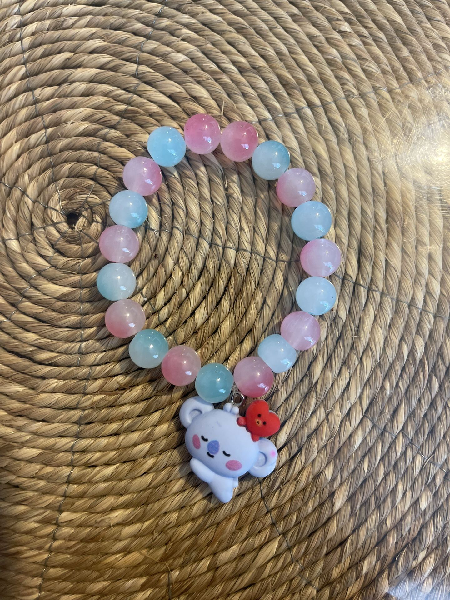 Handmade with beads and made with elastic string which is adjustable for every size!