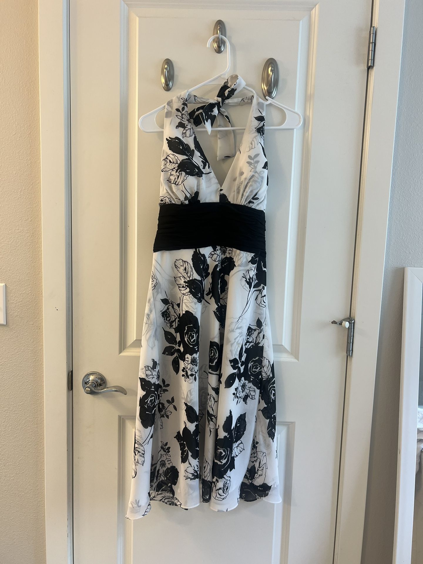 Black And White Halter Cocktail Dress