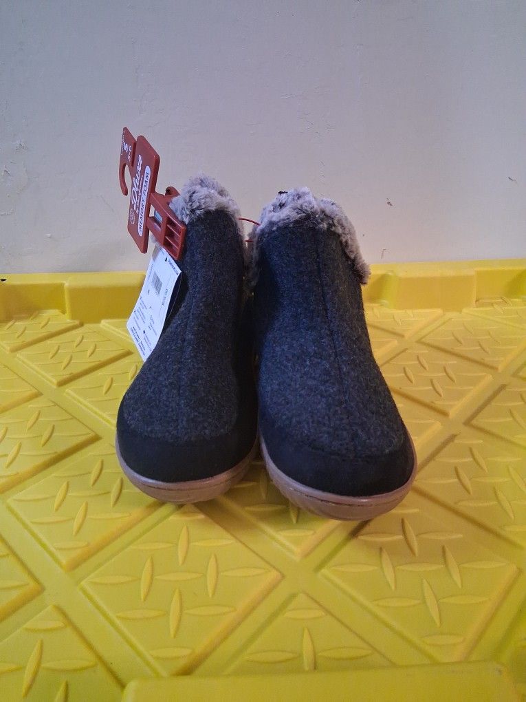 Women Black, brown rubber soles, fuzzy inside. Size: S 5-6