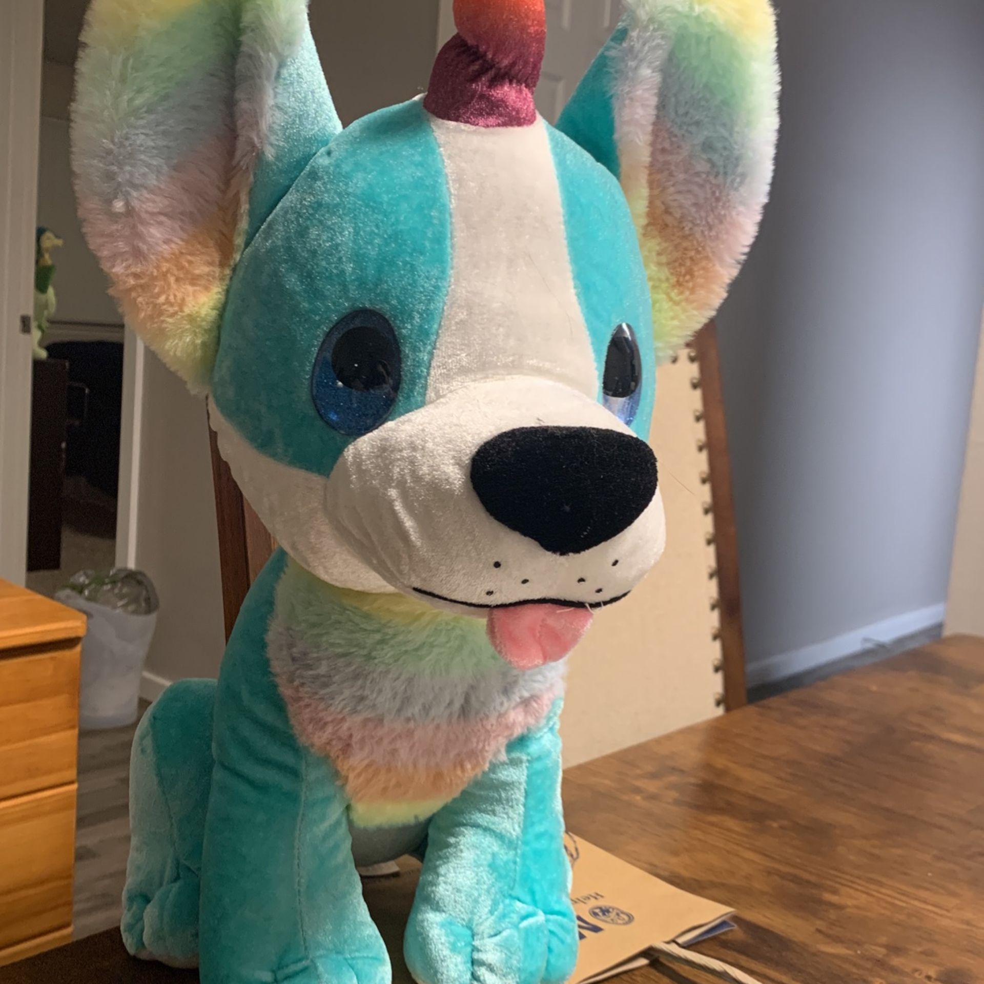 Great condition stuffy of a Unicorn-Dog. It’s hair is super soft and it’s body is stiff enough to stand just fine on its own. I’ve got 2 of them, so let me know if you would like them both :)