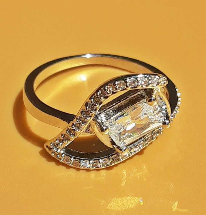 Emerald Cut White Sapphire Silver Ring Size 7