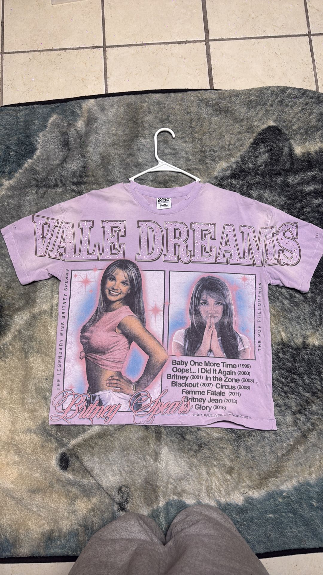 Valley streetwear division. Sized small box cut shirt. Britney Spears edition with rhinestones. Used once washed right after. Throwing in the vale sticker that came with the order. For more information feel free to contact.