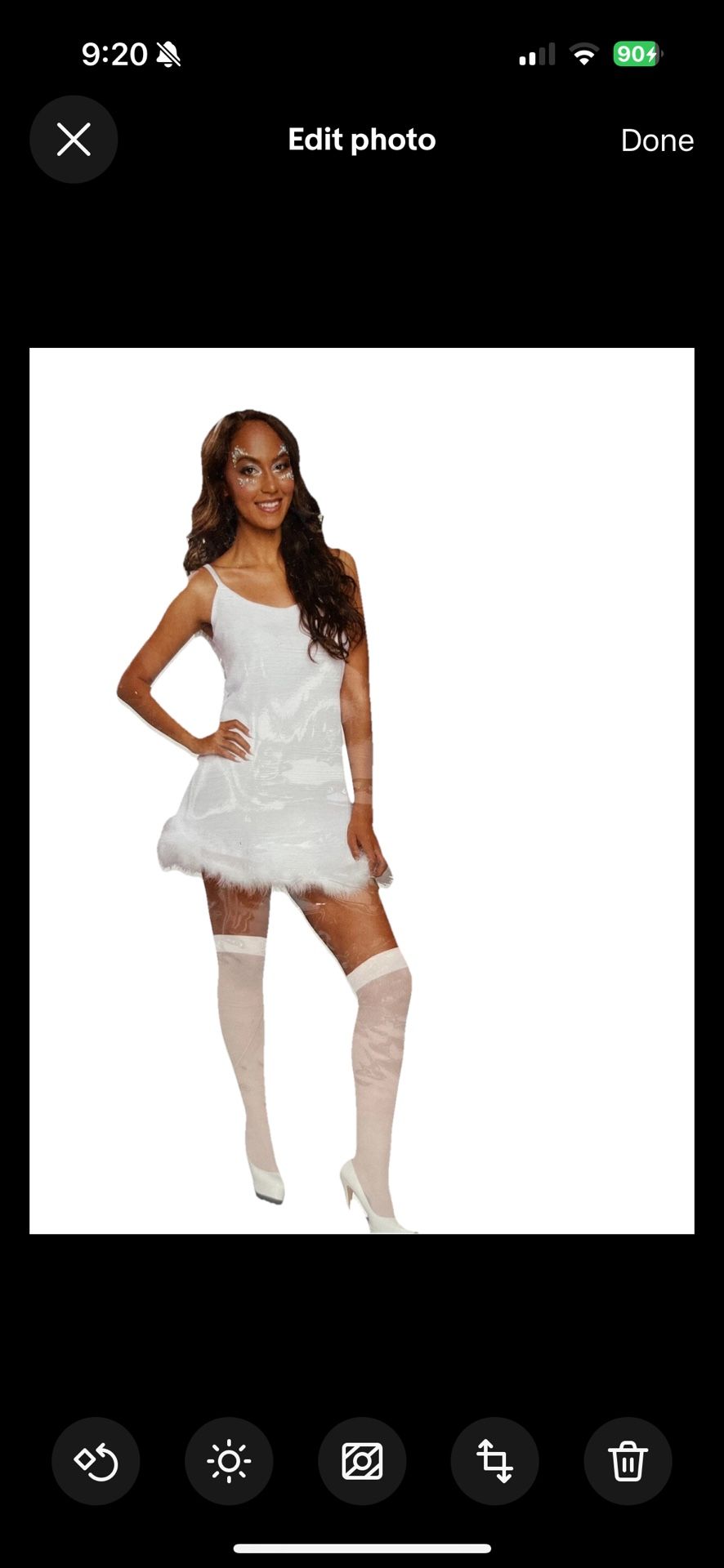 White Hot Angel Women’s X-Large Halloween Costume Dress, Hosiery, Headband 3 Pcs set, new seal bag, made modern hero, from China, 100% polyester, hand wash, bottom of dress has feathered design white color, sexy women’s costume