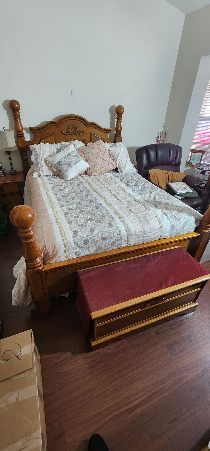 Bedroom set: $1100 take all ( Matress not included) All is very well taken care of . Super strong quality craftmanship wood ..Details on wood is so nice.. 4 furnitures in total as seen on photos. I maybe able to sell individual, but the good deal is with the entire room.. We are throwing in an electric brown recliner for free.. Moving sale in the Country Walk area by Tamiami Airport Miami. Message me Alberto