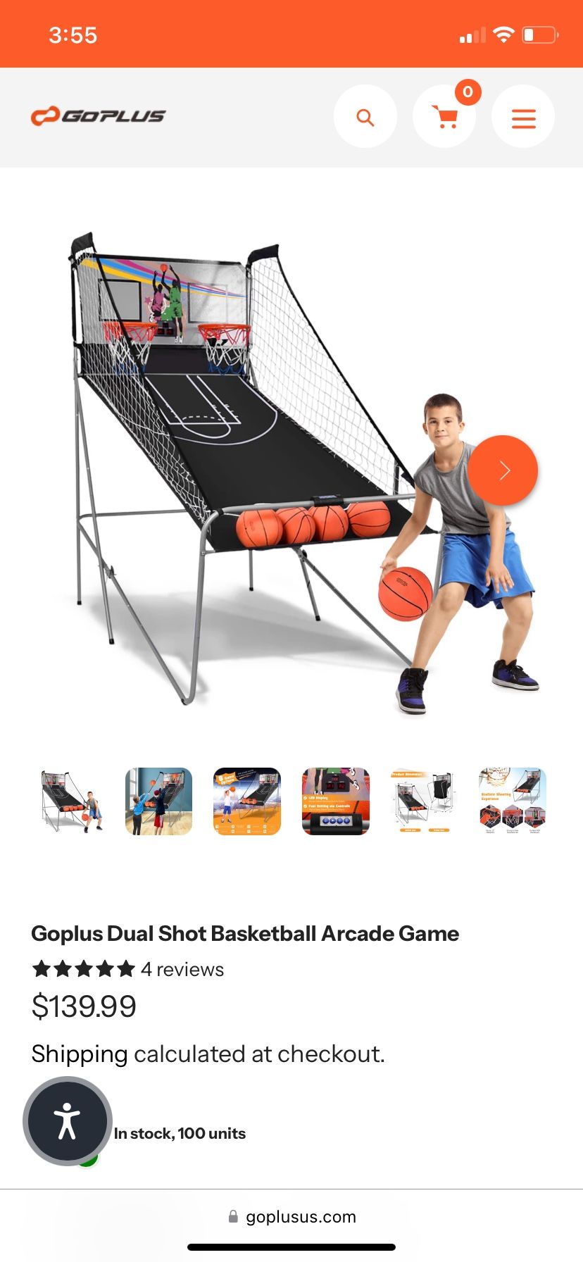 Go Plus basketball machine, bought and never taken out of the box. Includes 4 basketballs, 2 hoops, all pieces and tools to build everything.