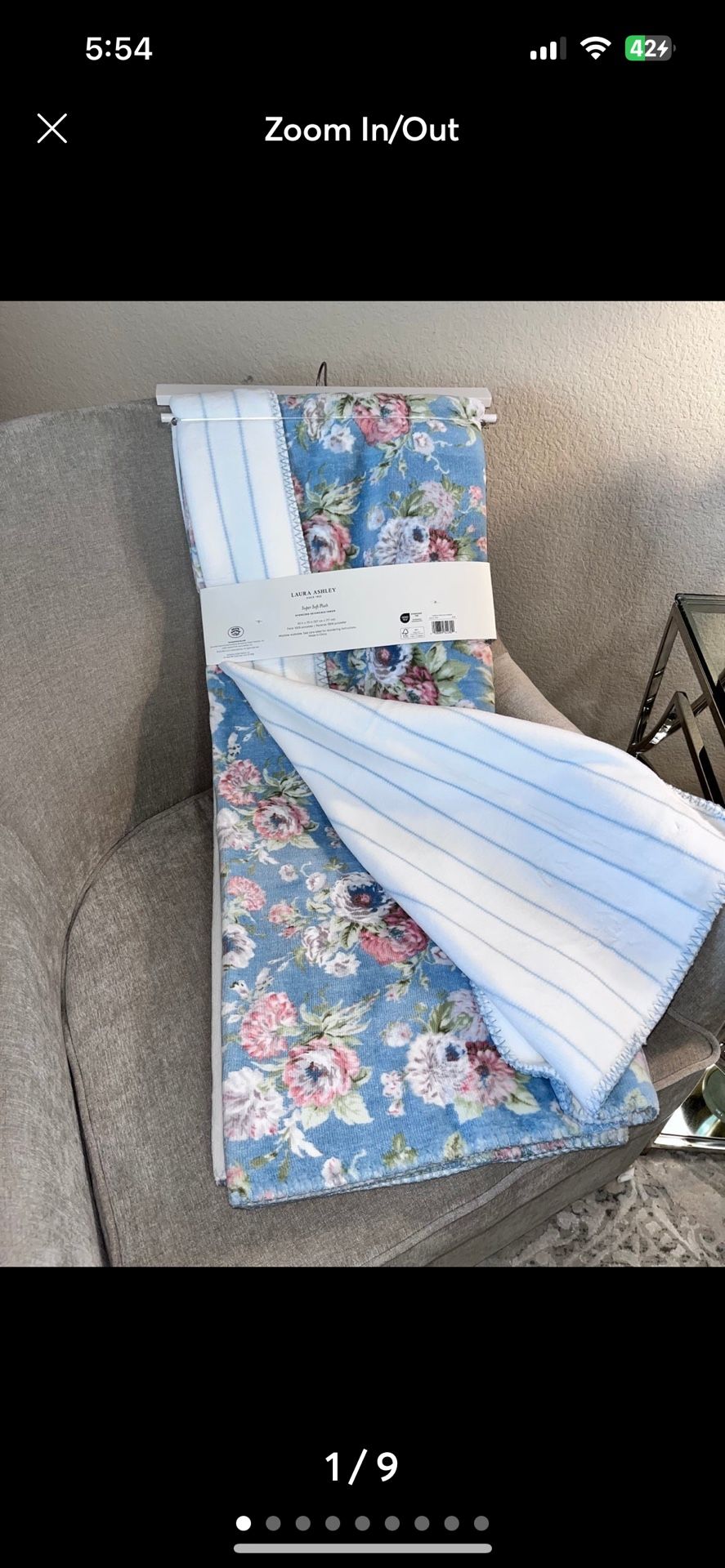 1-NWT LAURA ASHLEY VINTAGE FLORAL PRINT OVERSIZED REVERSIBLE THROW BLANKET THIS BLANKET IS SUPER SOFT,VERY NICE TO THE TOUCH ,IT HAS A COTTON VELVET FEEL TO IT ! OVERALL A NICELY MADE UNIQUE DESIGN DECORATIVE THROW BLANKET SIZE : 50”x 70” COLOR : CREAM BLUE GREEN PINK