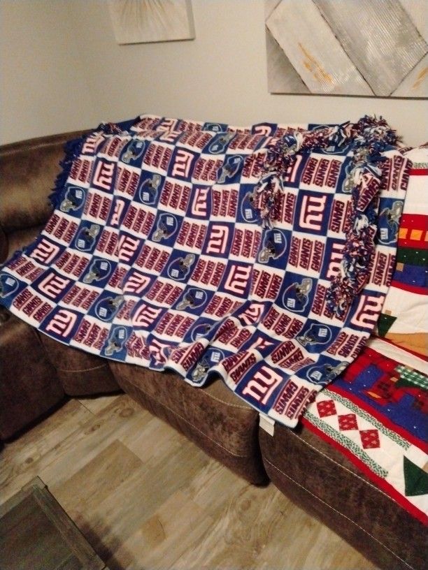 Handcrafted fleece blanket the blanket is made with the my giants logo the blanket is double thickness and is 64"x 54" and there is a handcrafted fleece scarf that matches the blanket this blanket would make a great Christmas gift for someone