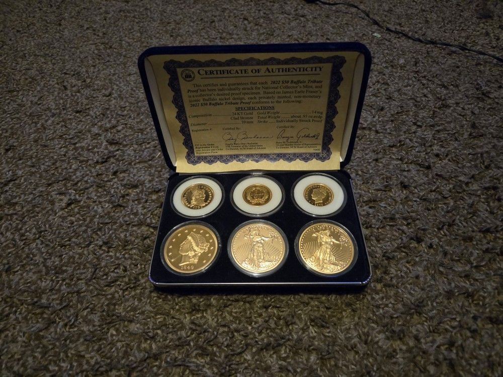 24k gold plated tribute coins. Perfect condition with certificates of authenticity and case.