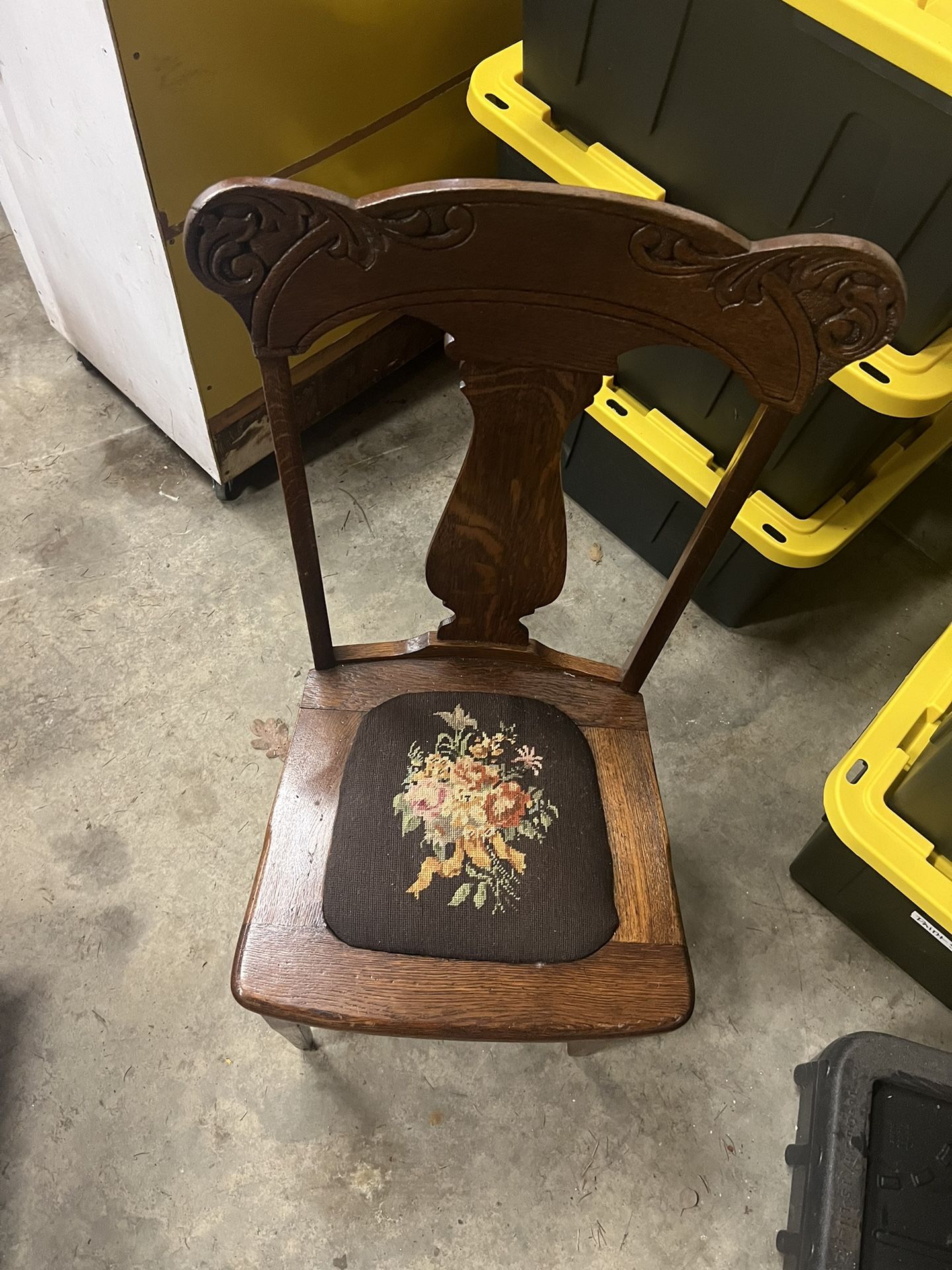 Vintage solid chair. Sturdy. One chip on front leg (in photos)